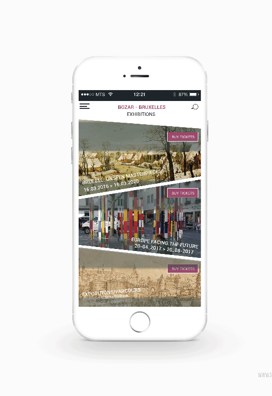 UI design : iOS Application to present exhibitions of the BOZAR Museum.